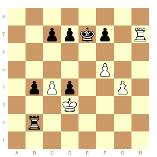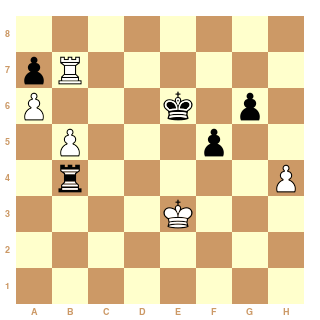 J'ai bien du mal à évaluer la position, comme l'indique Renan , je serais d'avis pour les noirs de créer immediatement un pion passé avec b4 et de prendre soin de garder ma tour noire sur la 2eme rangée pour " couper " le roi blanc ...