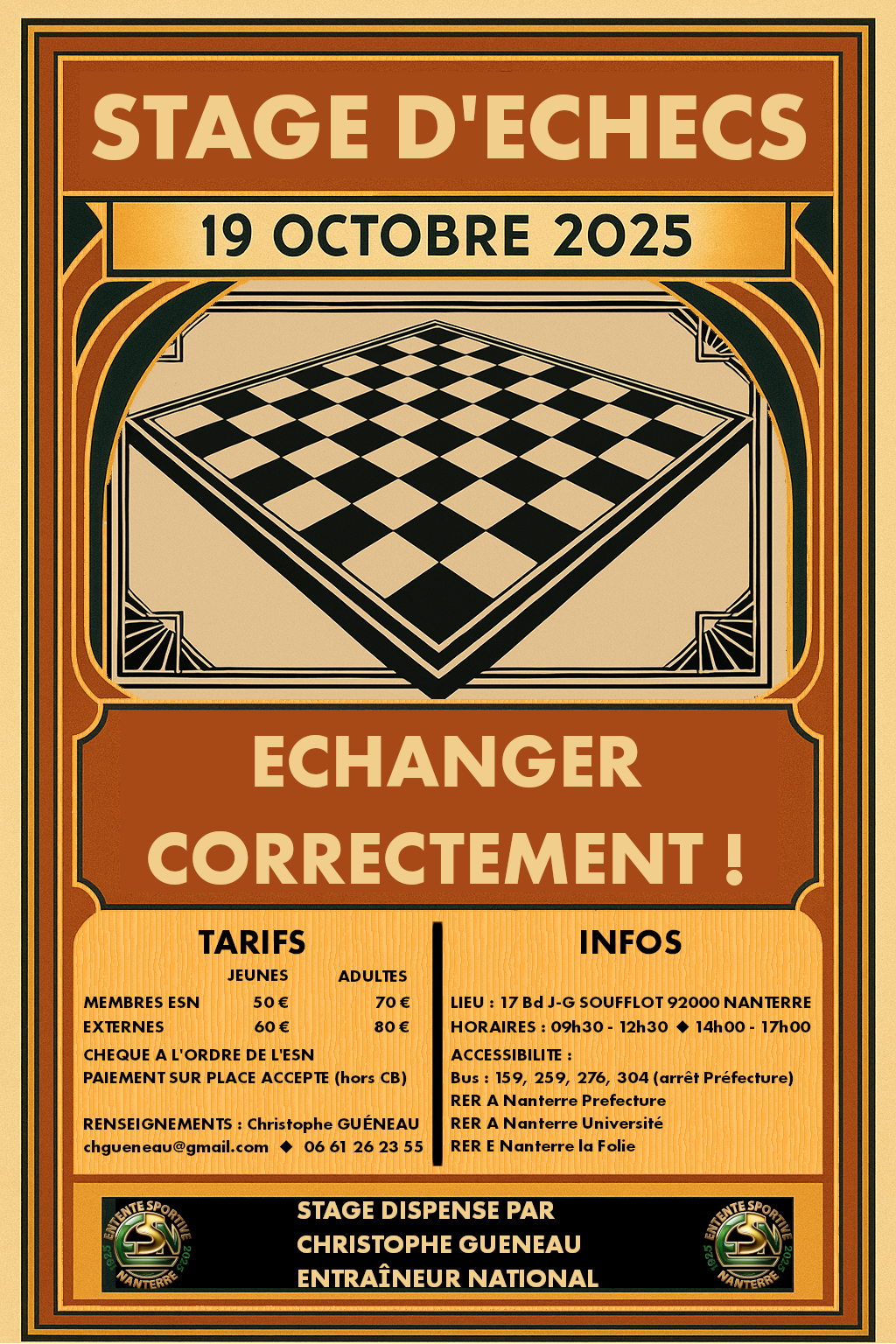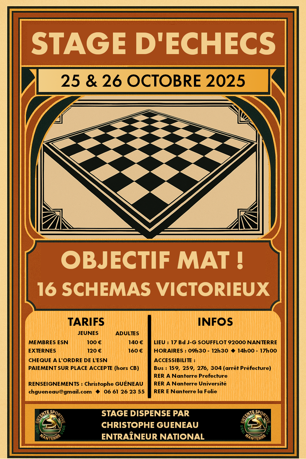 Samedi 25 et dimanche 26 octobre le thème sera « objectif mat : 16 schémas victorieux !