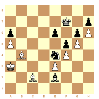 Assez amusant : le Roi blanc est coincé au Nord-Est et ne peux absolument pas accéder centre, grâce au contrôle des deux pièces mineures noires