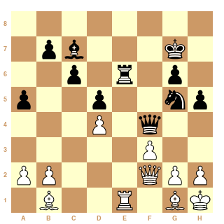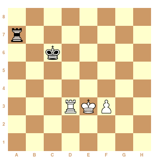 Il y a eu des erreurs des 2 côtés mais les blancs sont parvenus à remporter cette partie. Je me demandais en direct si la méthode de Grigoriev permettrait de gagner, puisque le roi noir est coupé de 2 colonnes. Pour faire (trop) court l'idée serait d'avoir le roi blanc devant le pion disons en h5 et la tour en f2 (position qui serait gagnante si on l'obtenait par magie). Mais la tour blanche sur la même rangée que le pion nous dessert, et on ne peut pas à la fois passer la tour derrière le pion et le roi devant le pion sans être repoussé à coup d'échecs frontaux. Et ici 47.f4 ? de suite serait une erreur, à vous de me dire pourquoi.