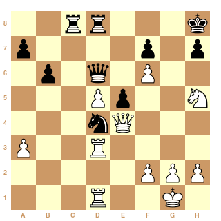 Malgré ce qu'on pouvait penser, Sindarov a encore permis la Petrov, belle partie tactique mais les Blancs n'ont jamais eu de plan concret et les Noirs ont maintenu la pression. S'il veut concasser le bloc de granit chinois, il va devoir trouver autre chose ...