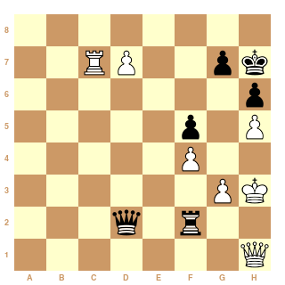 @supergogol 1.Tc8 De2! 2.Th8+ Rxh8 3.d8D+ Rh7 4.Dh4 "sauve les meubles avec avantage matériel", mais... Et ensuite? :). 4...Rh8... les deux dames sont bien occupées et le pion g ne peut pas jouer :).