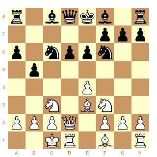 Dans une Sicilienne variante Tchekhover, jouée par Vitali Tchekhover contre Lissitsine en 1938 : 1.e4 c5 2.♘f3 d6 3.♘c3 ♘f6 4.d4 cxd4 avec la reprise en d4 par la Dame. 5.♕xd4, Jonas Buhl Bjerre a été surpris. Et sur 5...a6 6.♗e3 ♘c6 7.♕d2 e6 8.0-0-0 et là, au lieu de 8...♗e7 ou 8...♕c7, un coup déjà perdant : 8...b5?. Benjamin Gledura a pris 8 minutes pour trouver la réfutation.